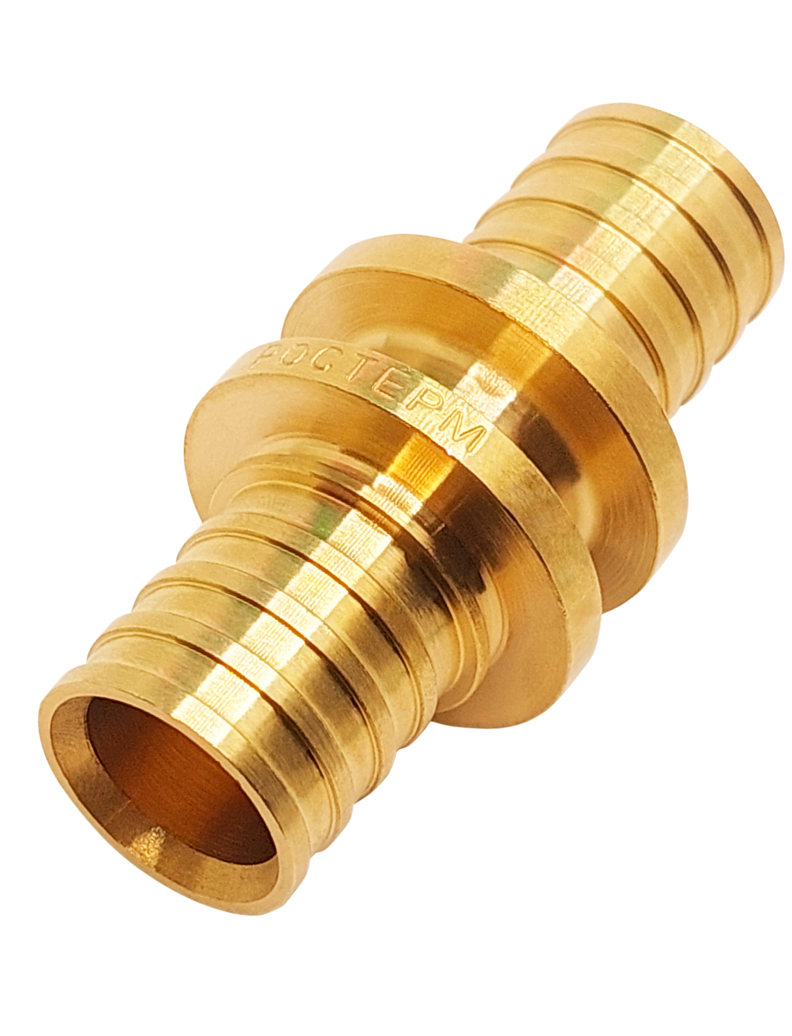 Муфта РОСТерм из высококачественной латуни CW617N, используется для соединения полимерных труб РЕ-Х и PE-RT в системах отопления или водоснабжения. Вместе с напрессовочной гильзой она обеспечивает надежное и герметичное соединение, предотвращая возможные утечки и продлевая срок службы всей системы.