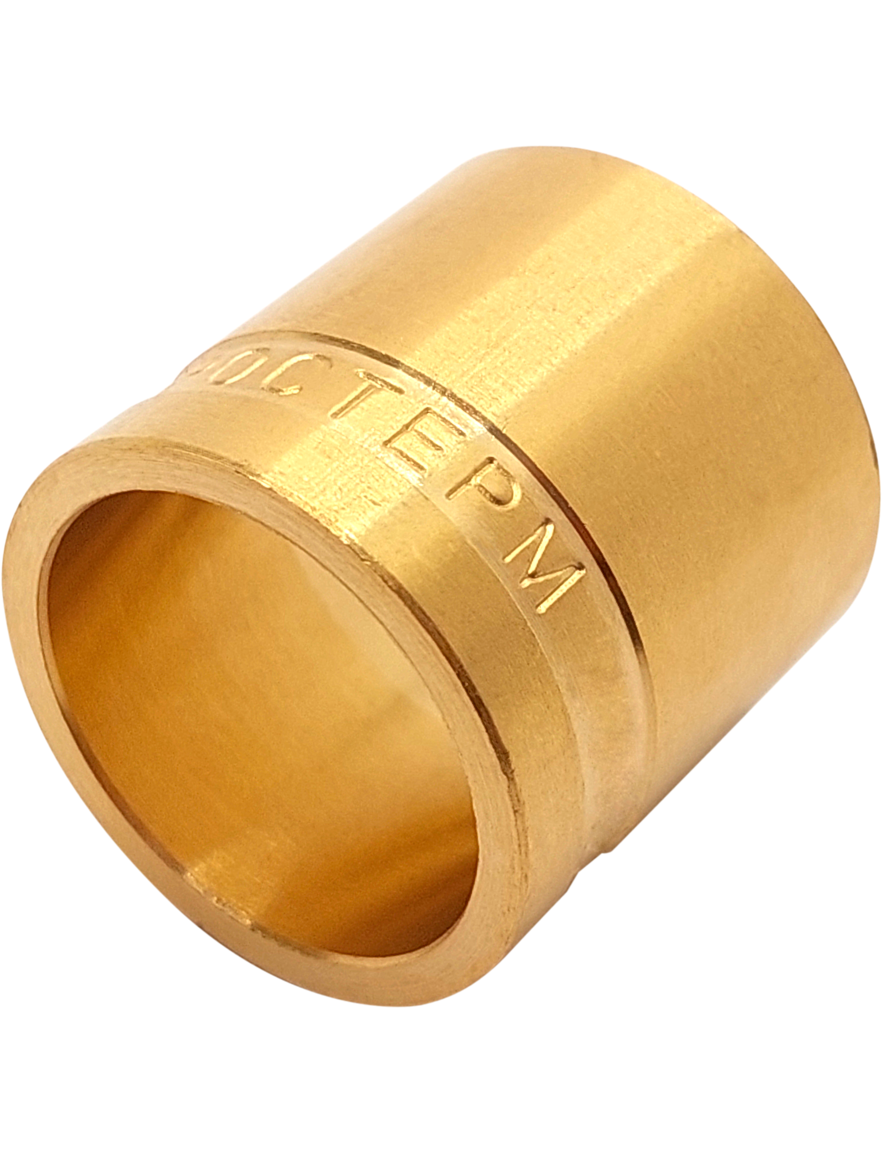 Гильза напрессовочная РОСТерм из высококачественной латуни CW617N, используется для создания прочного и герметичного соединения между фитингом аксиальной системы и трубой из сшитого полиэтилена PE-X и PE-RT в системах отопления или водоснабжения. Она предотвращает возможные утечки и обеспечивает долговечность и эффективную работу системы.