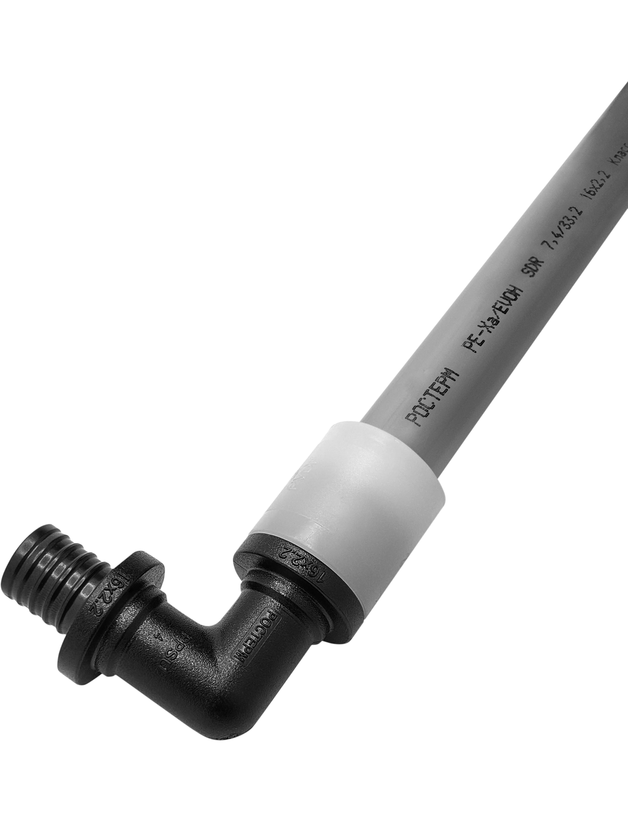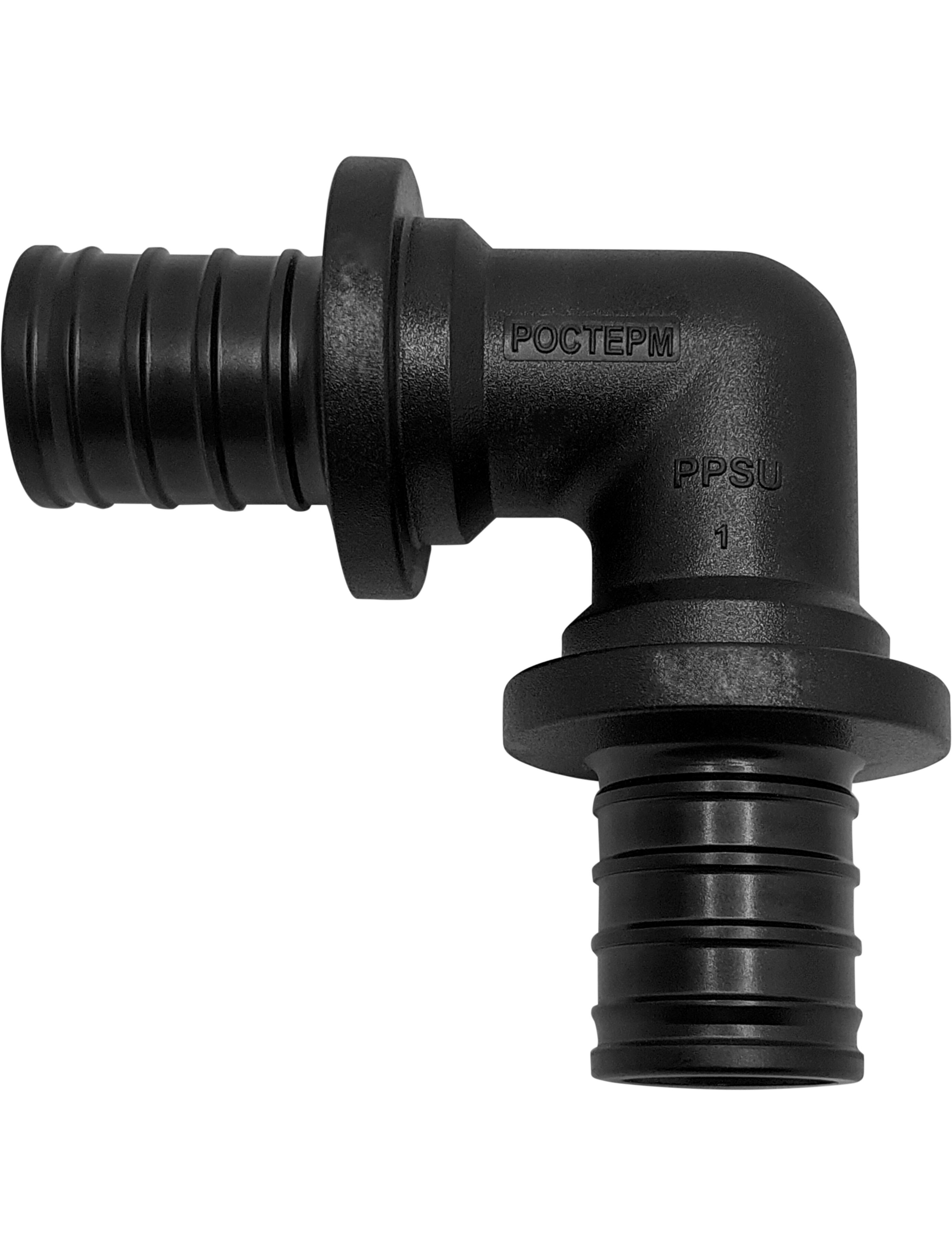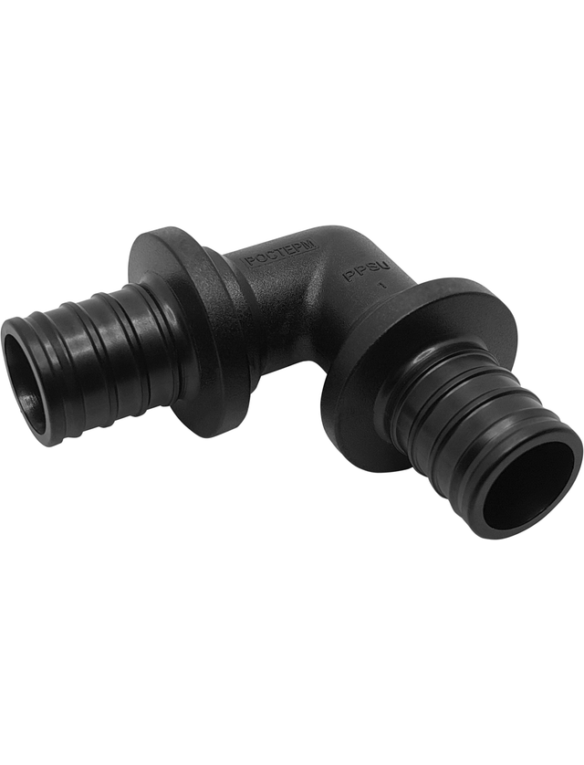 Уголок РОСТерм 90° PPSU равнопроходной, устанавливается для создания угла поворота трубопровода на 90º путем соединения труб из сшитого полиэтилена, совместно с напрессовочными гильзами PVDF соответствующего размера. Используется в аксиальной системе для соединения полимерных труб РЕ-Х и PE-RT. Для производства фитингов используется материал полифенилсульфон (PPSU). Данный материал сохраняет превосходные механические, электрические и тепловые характеристики при длительном воздействии высоких температур.