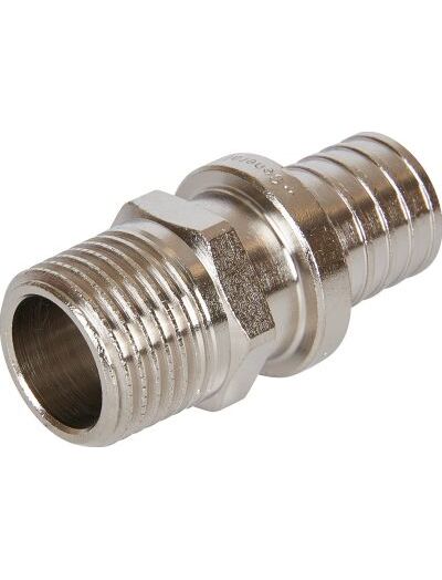 STOUT Переходник с наружной резьбой 20х2.0x1/2 никелированный для труб из сшитого полиэтилена аксиальный