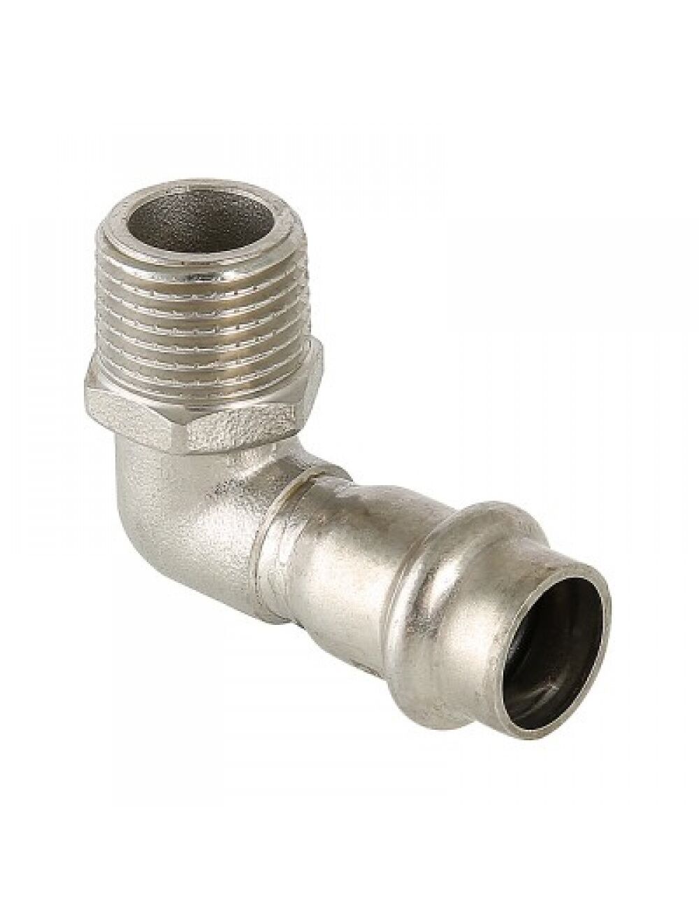 - Пресс-угольник из нержавеющей стали с наружной резьбой обеспечивает соединение тонкостенной стальной трубы с резьбовым элементом монтируемой системы под углом 90°.