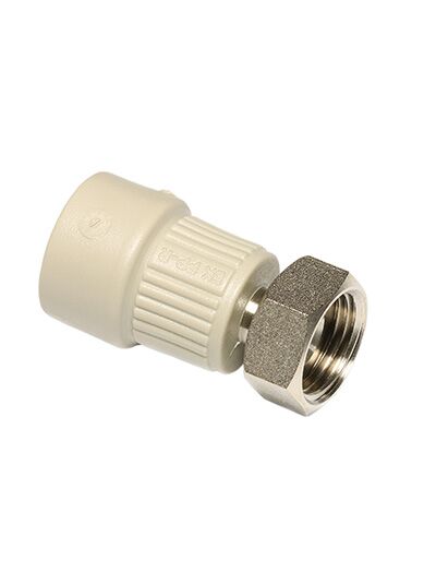Муфта полипропилен 20х3/4" ВР с накидной гайкой с отверст для пломбы 25бар, t-95*C, сварка (мет.вст)