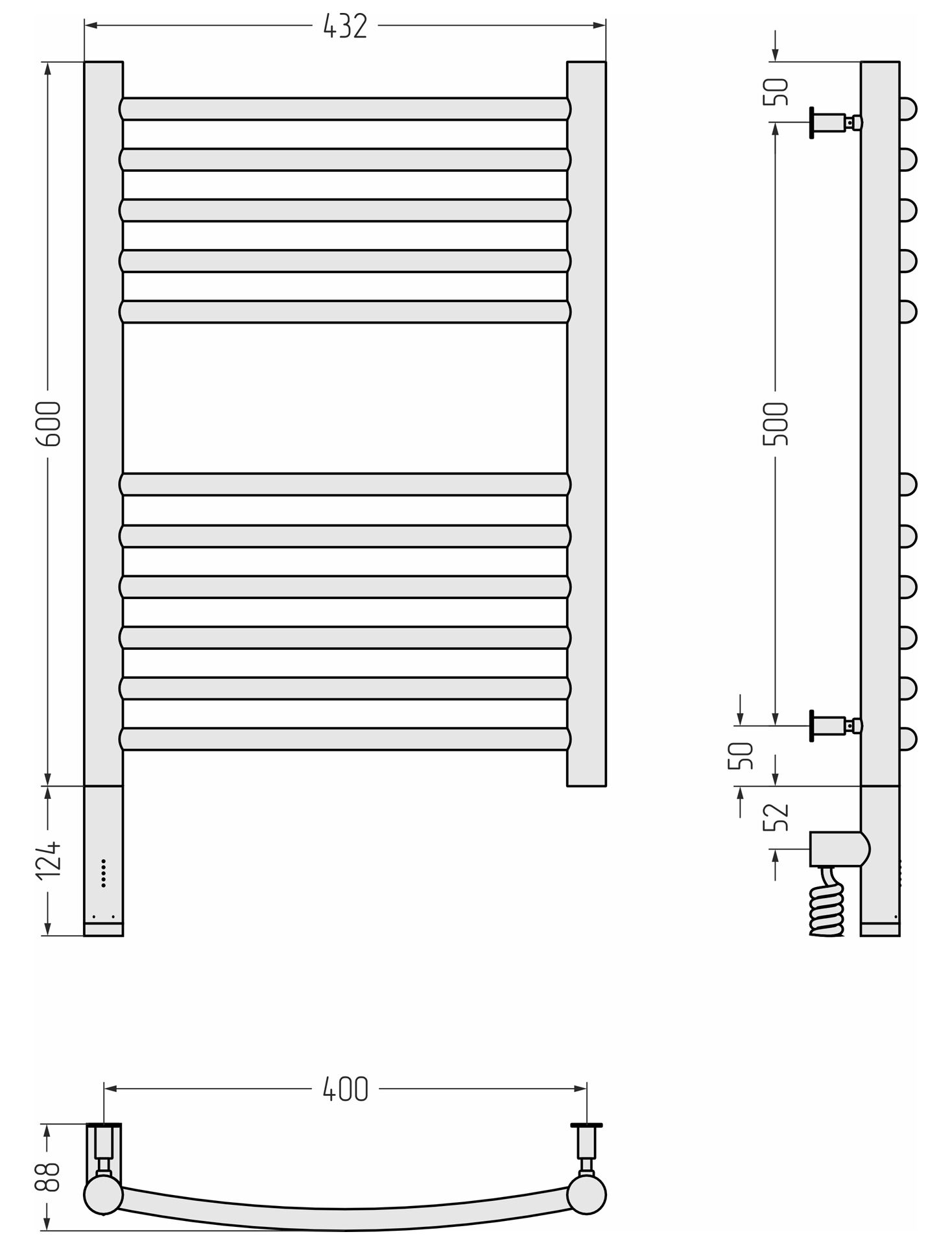 Полотенцесушитель электрический Сунержа Богема 3.0 выгнутая 600х400 МЭМ левый