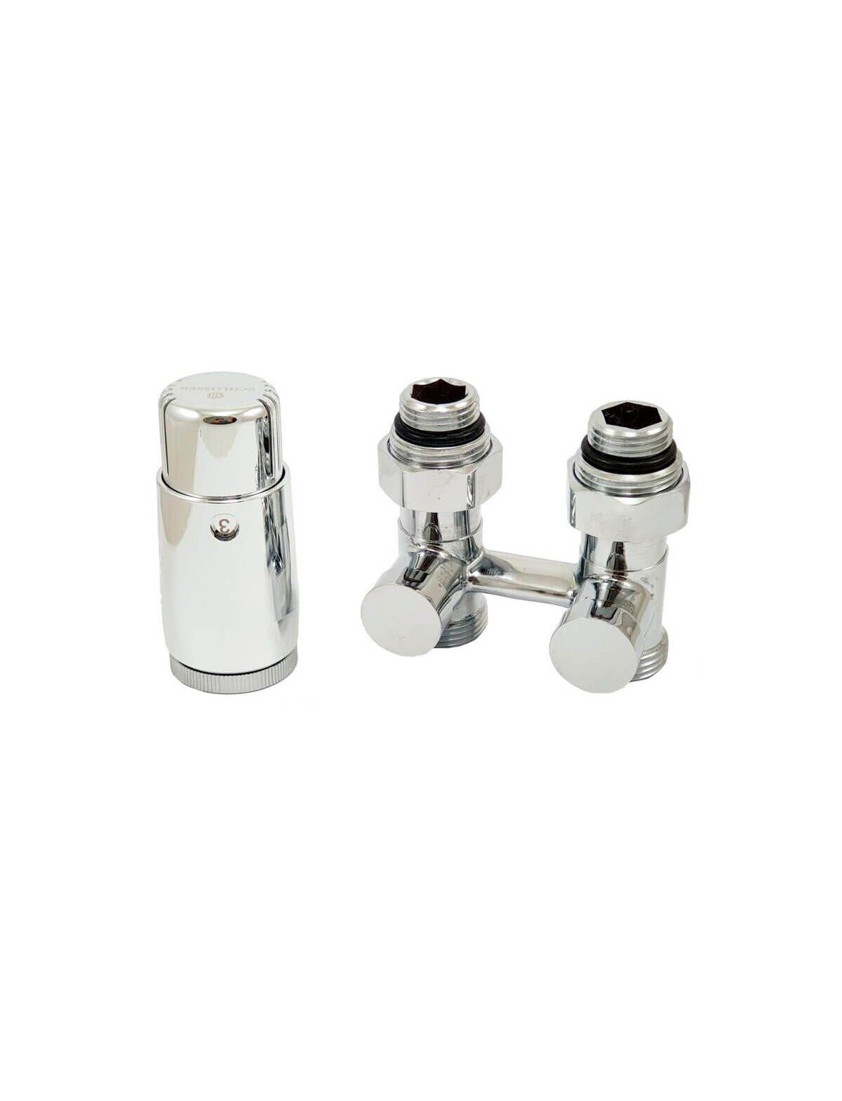 Комплект узел нижнего подключения прямой, хром G 3/4 x 3/4 D=50 мм с термоголовкой MINI M30x1,5 + 2 Ниппеля 1/2x3/4