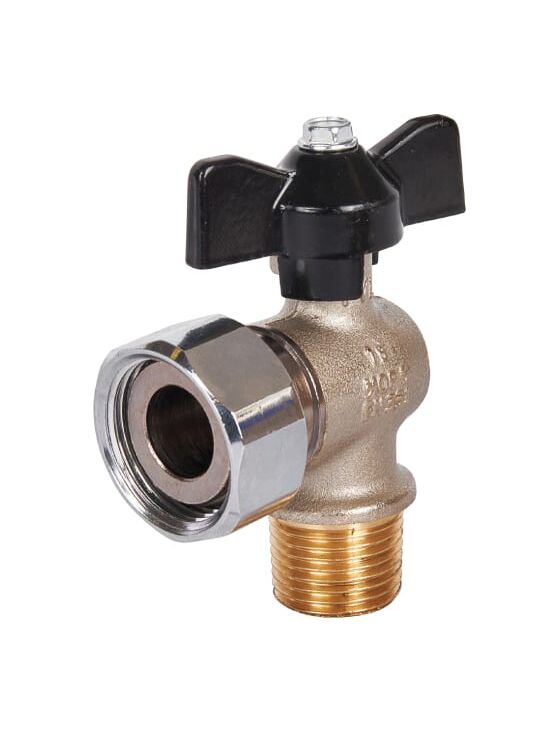 STOUT Кран шаровой с накидной гайкой угловой, НР/накидная гайка, ручка бабочка 1/2x3/4
