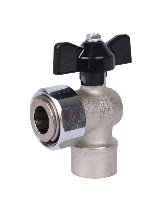 STOUT Кран шаровой с накидной гайкой угловой, ВР/накидная гайка, ручка бабочка 1/2x3/4