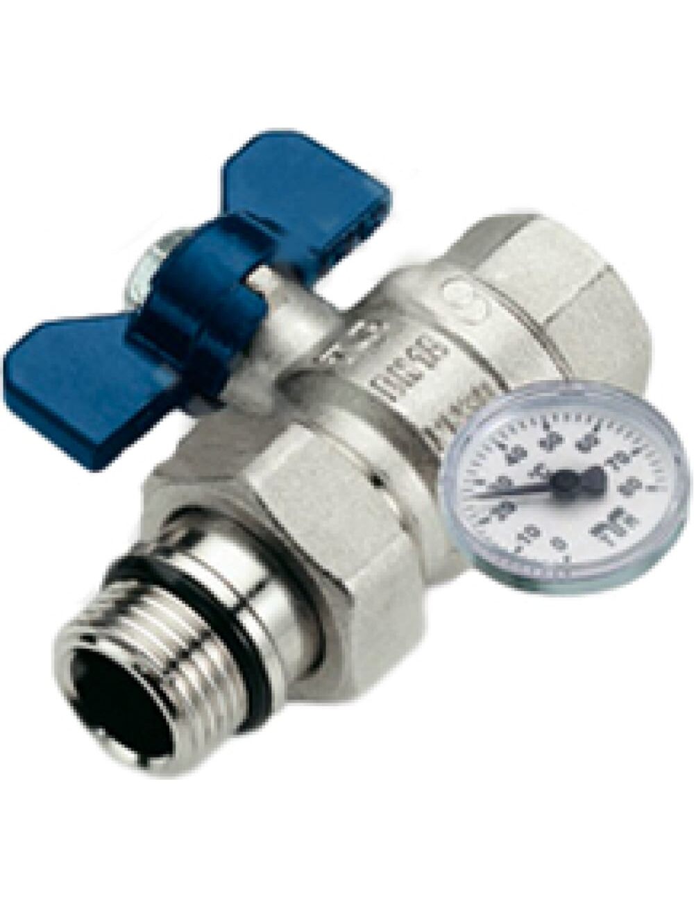 Кран 1" шаровый со сгоном и термометром (синяя бабочка)