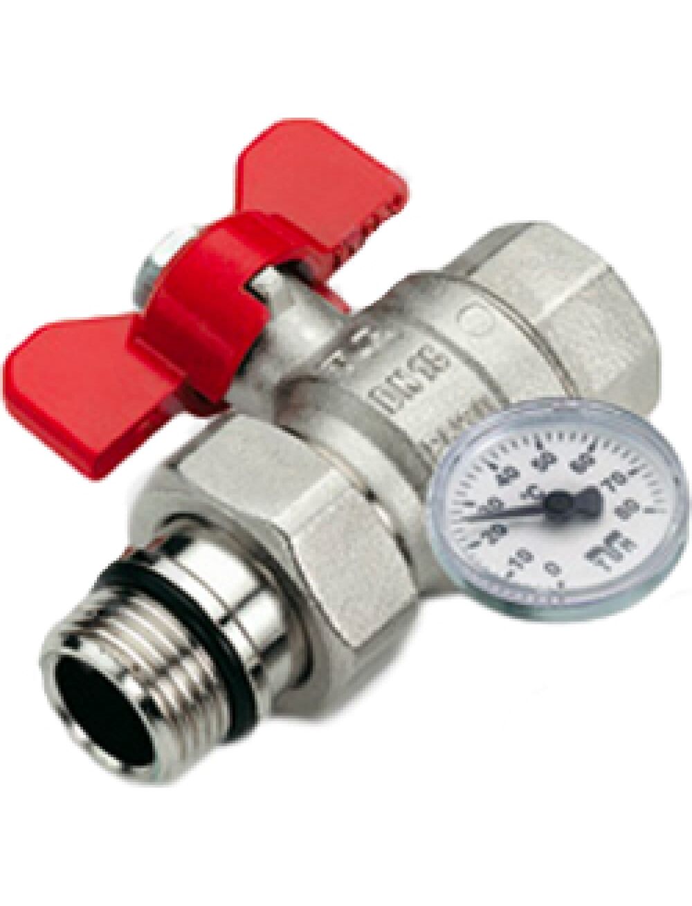Кран 1" шаровый со сгоном и термометром (красная бабочка)