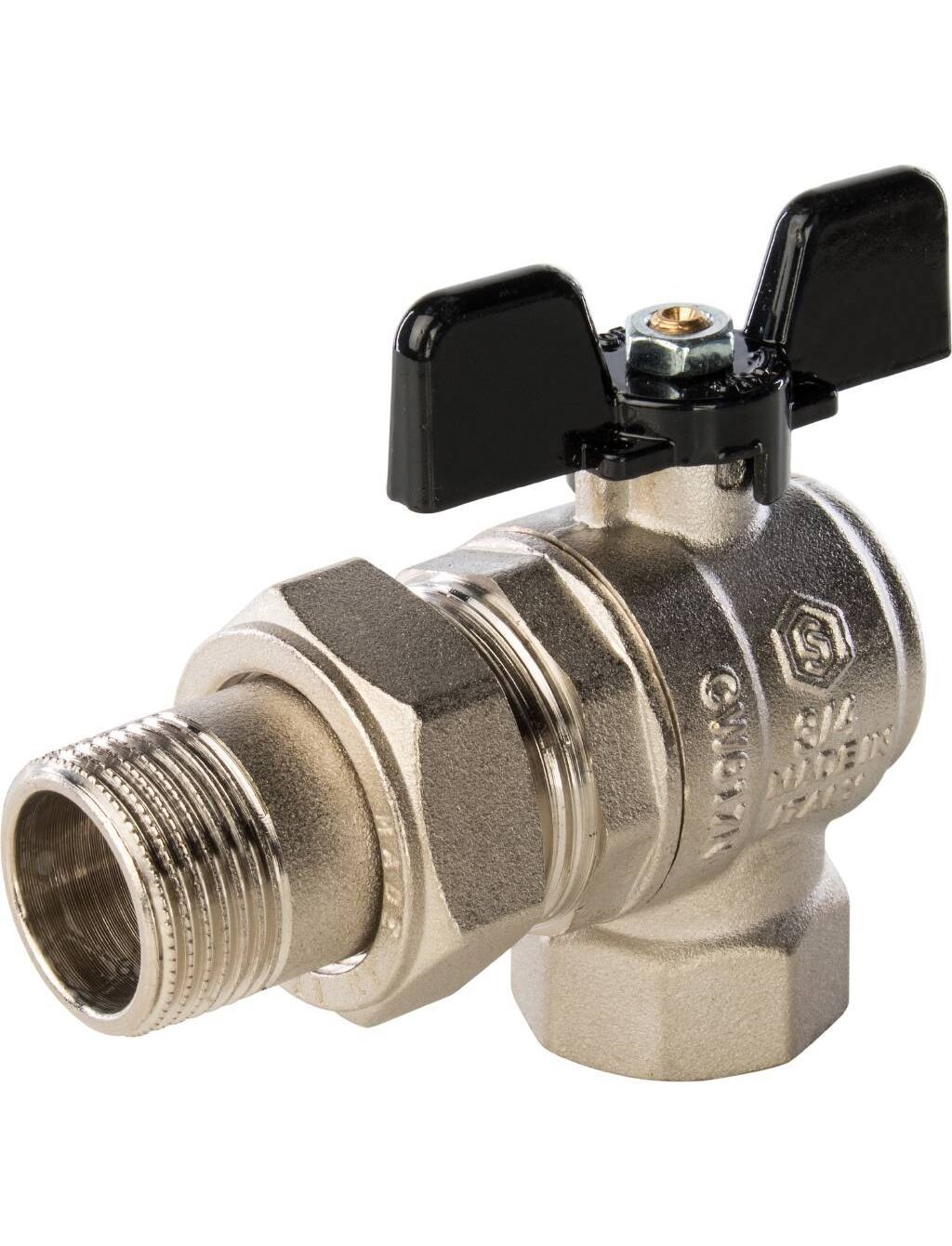 STOUT Кран шаровой полнопроходной угловой, ВР/НР, ручка бабочка 3/4, американка